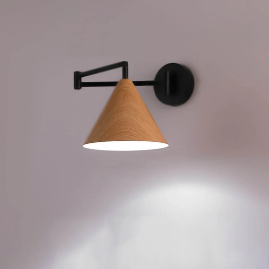 Minimalistyczna kinkietowa lampa ścienna z stożkowym kloszem i obrotowym ramieniem