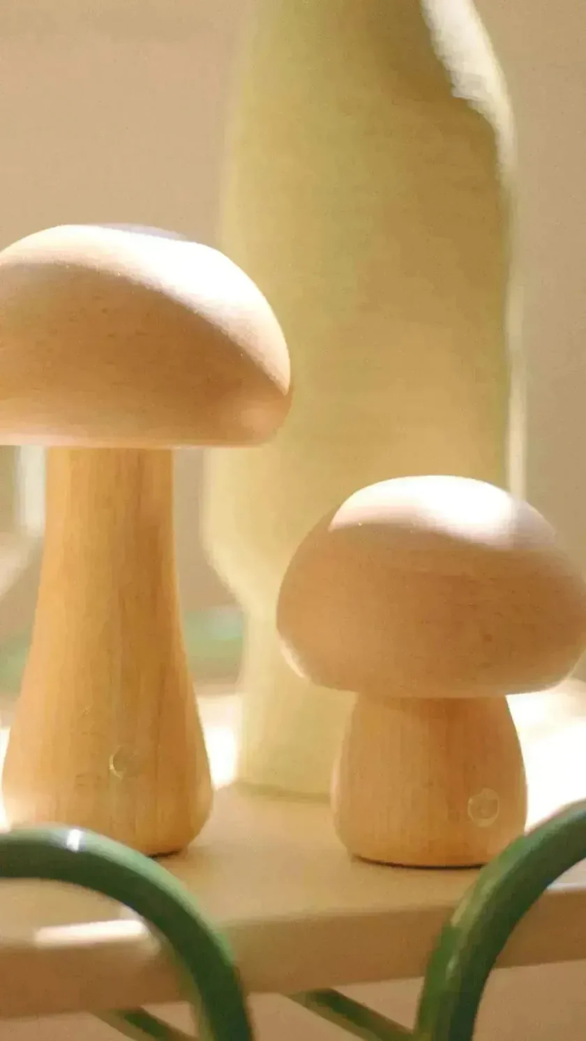 Inspirativní design: Tvar inspirovaný houbou spojuje eleganci přírodního dřeva.