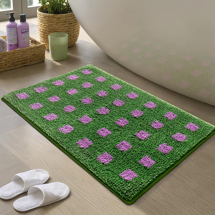 Odśwież swoją łazienkę dzięki tej miękkiej w dotyku macie w kratkę, która jest równie urocza, co praktyczna. Puszysta, flokowana powierzchnia otula stopy, a antypoślizgowy spód pomaga zapobiegać poślizgom na mokrych płytkach. Dzięki urokliwemu wzorowi i łatwej w pielęgnacji tkaninie, to codzienna przyjemność, na jaką zasługuje Twoja przestrzeń — uporządkowana, komfortowa i pełna charakteru.