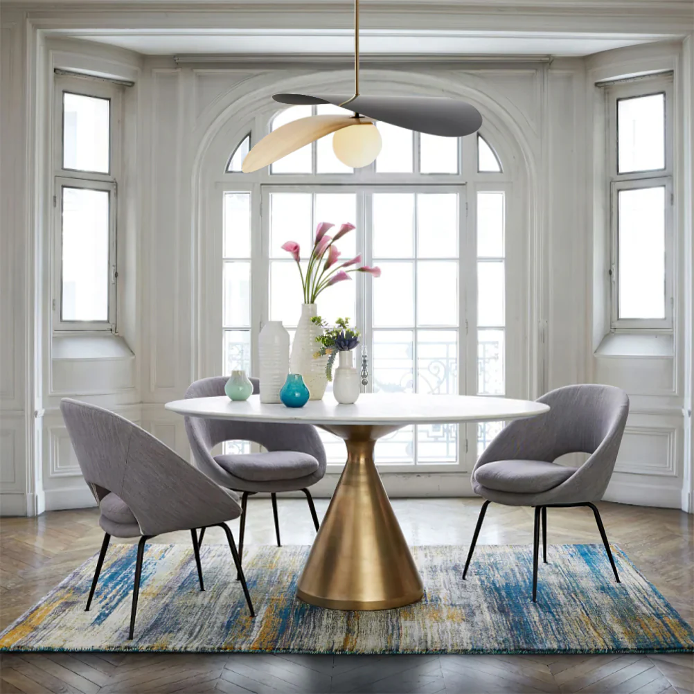 Ten żyrandol to nowoczesna interpretacja klasyki z połowy XX wieku. To oświetlenie jest piękne i wyjątkowe, dzięki czemu idealnie sprawdzi się w kuchennych kącikach śniadaniowych, przedpokojach, nad schodami lub półpiętrami, a także jako żyrandol nad mniejszymi stołami w jadalni.