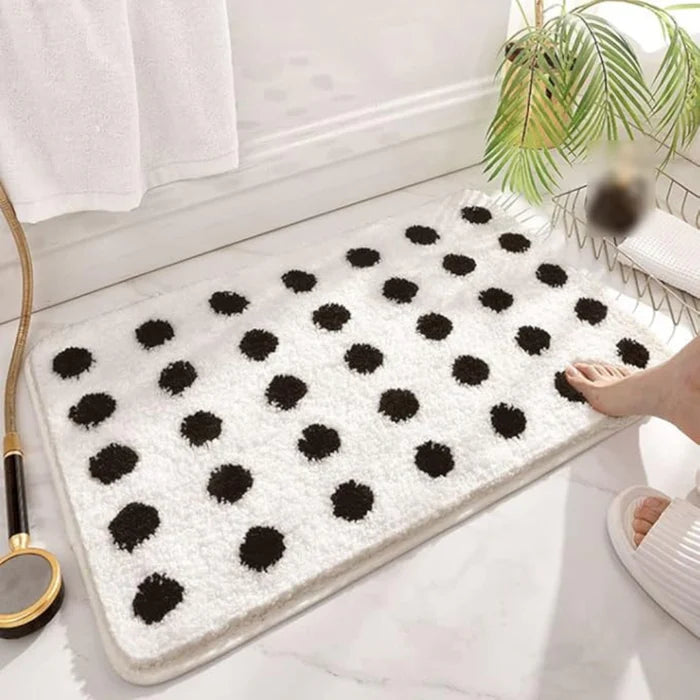 Wprowadź urok do swojej łazienki dzięki puszystej, tkanej macie łazienkowej w groszki. Jej supermiękka powierzchnia z mikrofibry delikatnie otula stopy i szybko wchłania wodę, utrzymując przestrzeń w suchości. Dzięki wesołemu, groszkowemu wzorowi i stabilnej, antypoślizgowej podstawie, mata łączy styl z bezpieczeństwem.