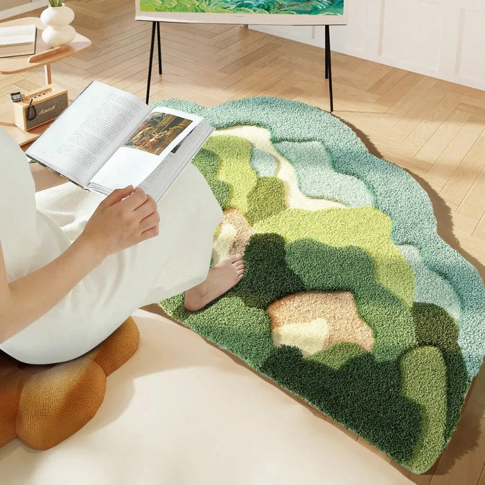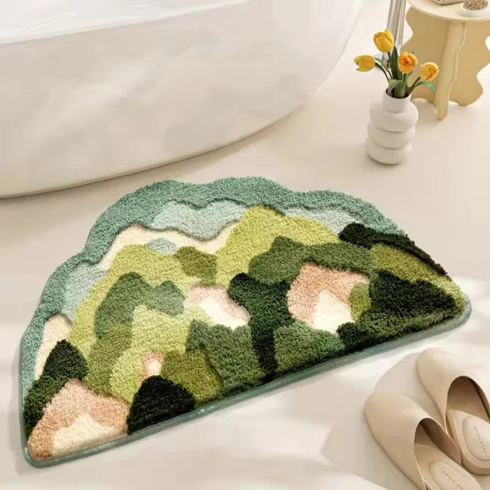 Wprowadź organiczny urok do swojej łazienki dzięki macie łazienkowej. Jej nieregularny, inspirowany mchem kształt oraz gruby włos dodają zabawnego, a jednocześnie uspokajającego charakteru. Wykonana z miękkiej mieszanki mikrofibry, zapewnia przytulne podparcie pod stopami, naśladując bujną zieleń. Idealna do łazienek, toalet czy przestrzeni w stylu spa z naturalnym klimatem.