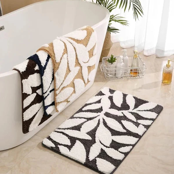 Dywanik łazienkowy z wzorem liści wnosi luksus i komfort do Twojej łazienki. Jego ultra-miękka, chłonna mikrofibra utrzymuje podłogę suchą, a stylowy wzór liści dodaje spokojnego, inspirowanego naturą charakteru.