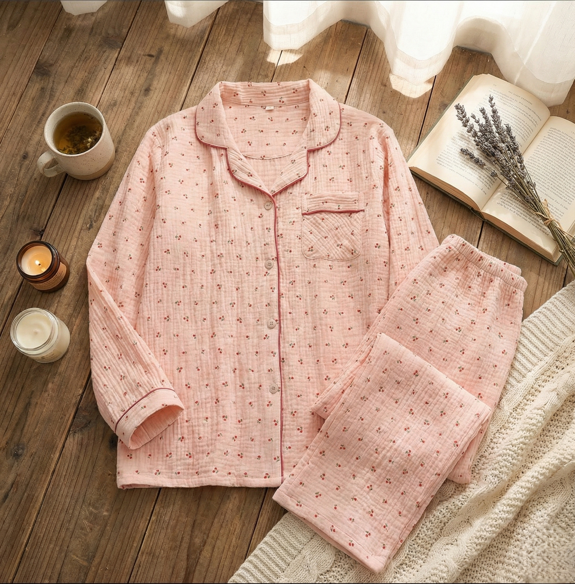 Piżama Damska The Cherry | 100% Bawełna Muślinowa